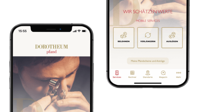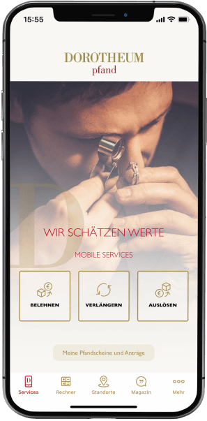 Mit der Dorotheum Pfand App können Sie ganz einfach belehnen, Fristen Ihrer Pfandscheine verlängern oder auslösen.