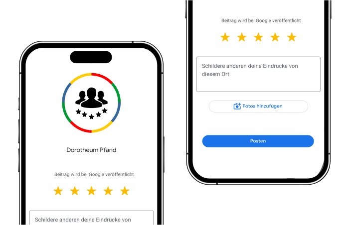 Wenn Sie mit Ihrem Besuch in einer unserer Pfandleihen zufrieden waren, würden wir uns sehr über eine positive Bewertung auf Google freuen.